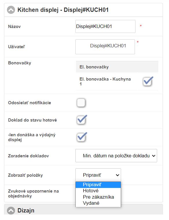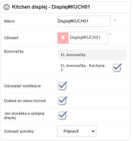 - V záložke Zariadenia, časť Kitchen displeje vyberte zariadenie ktoré chcete nastaviť.