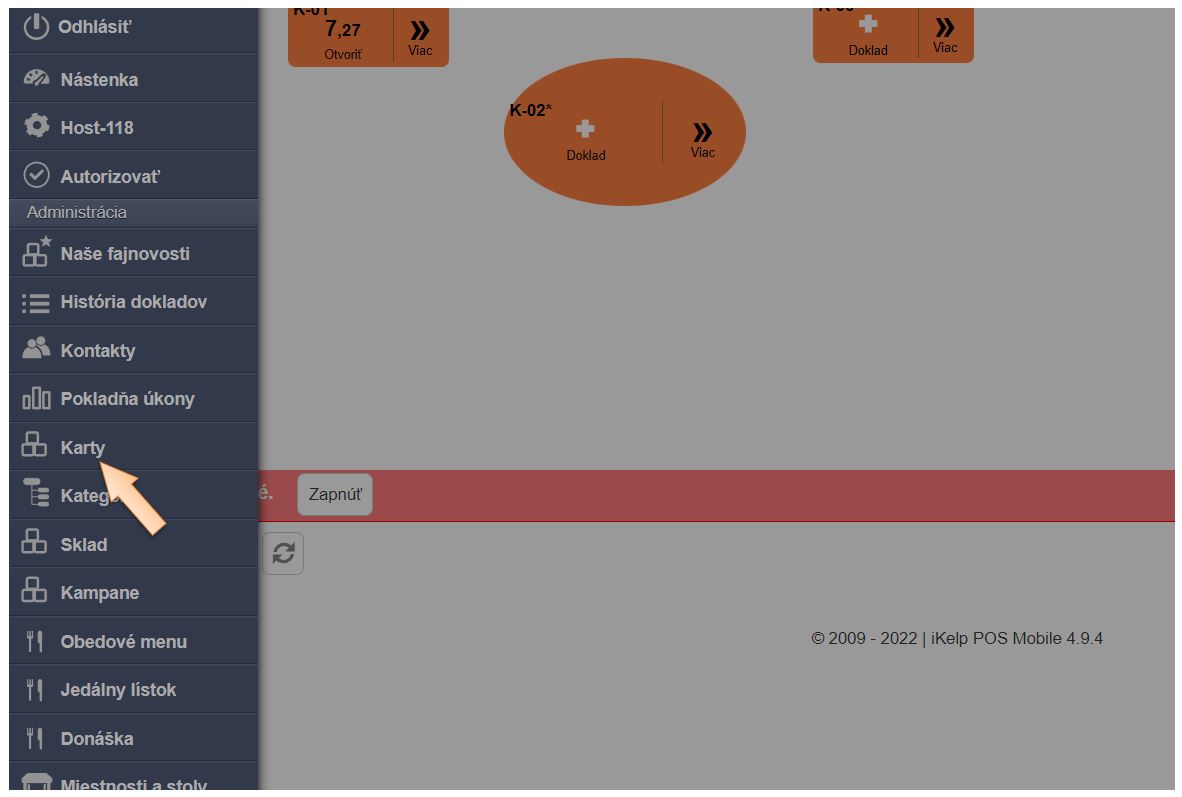 - Kliknite v menu aplikácie na Karty.
