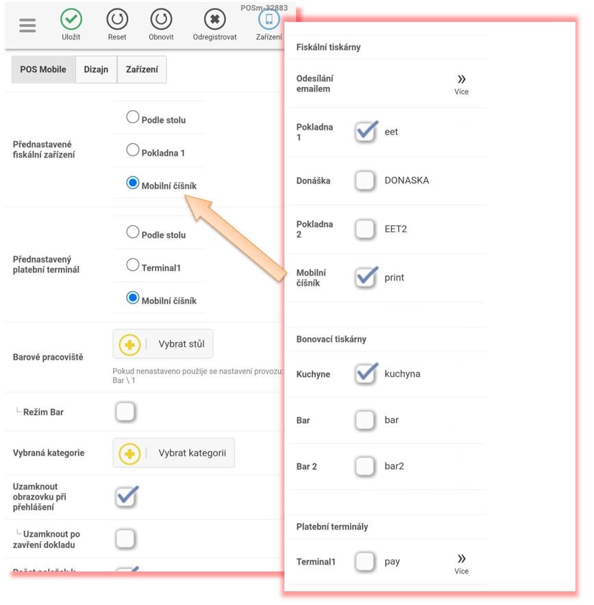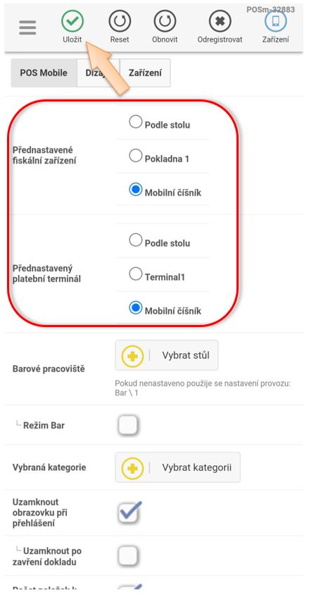 - Pozor, nezávisle sa nastavuje prednastavená účtenková tlačiareň a platobný terminál.