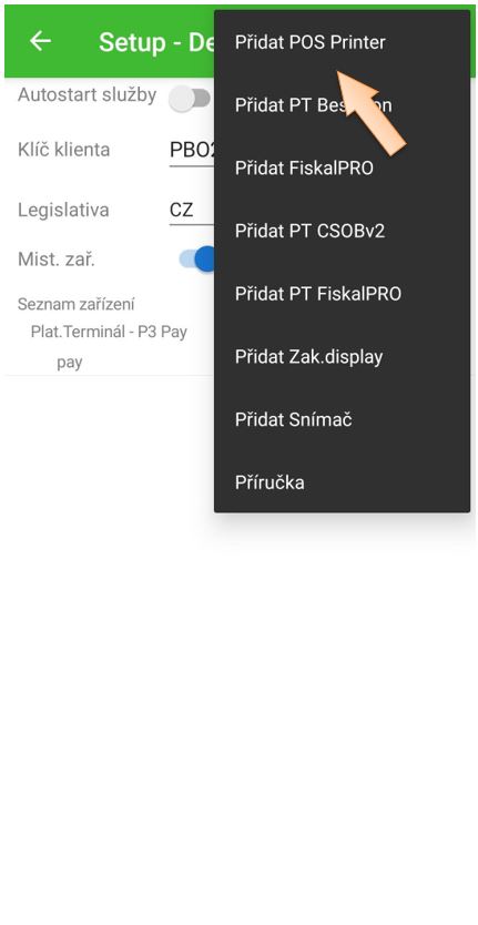 - V menu kliknite na nastavenia zariadenia POSm-xxx.