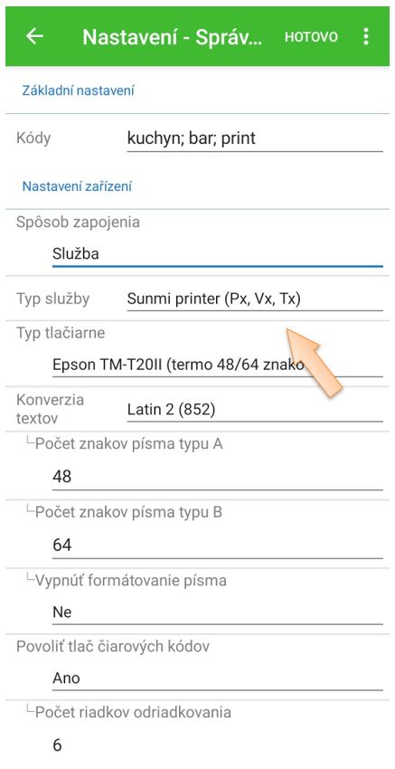- V časti Spôsob zapojenia na zariadeniach Sunmi nastavte komunikáciu cez Služba.