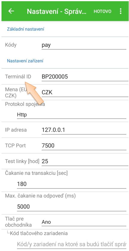- Zadajte Terminal ID. (ID terminálu z aplikácie Besteron.)