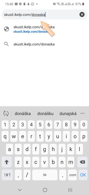 - Zadá adresu vašej prevádzky kde si online objednáva, v našom prípade skusit.ikelp.com/donaska.