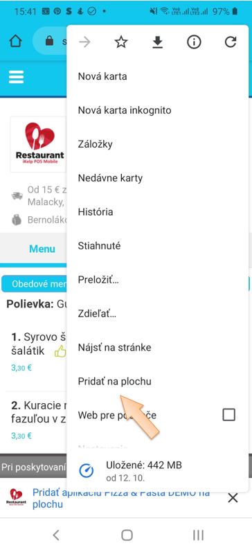 Keďže ide o webovú aplikáciu, nie je potrebné si nič sťahovať, ale pomocou jednoduchej ikony na obrazovke bude mať váš zákazník hneď dostupné online objednávanie.