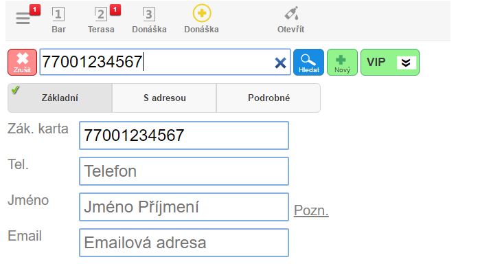 Ak vám zákazník poskytne konktaktné údaje, je možné si na základe čísla zákazníckej karty kontakt vyhľadať v adresári a konktaktné údaje si na tento kontakt doplniť. Viac o možnosti úpravy, doplnenia údajov a význame jednotlivých polí v adresáre sa dozviete v návode Úprava kontaktu v iKelp POS Mobile.
