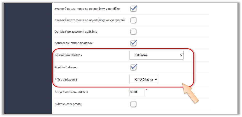 - Typ zariadenia - vyberte možnosť RFID čítačka.