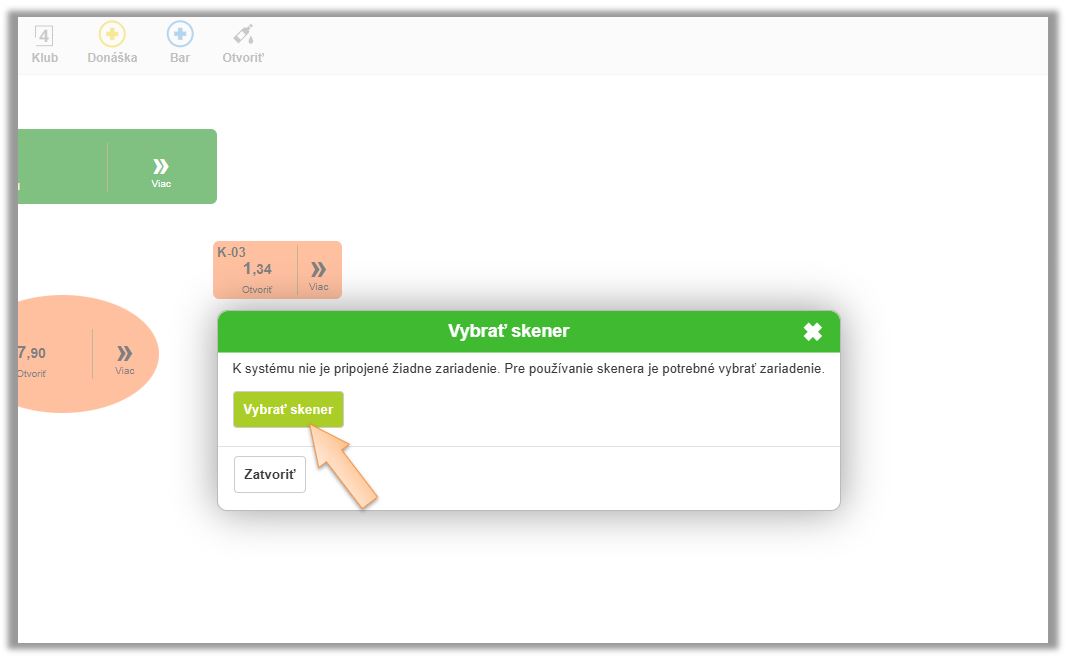 - Zobrazí hlásenie pre výber zariadenia. Kliknite na Vybrať skener.