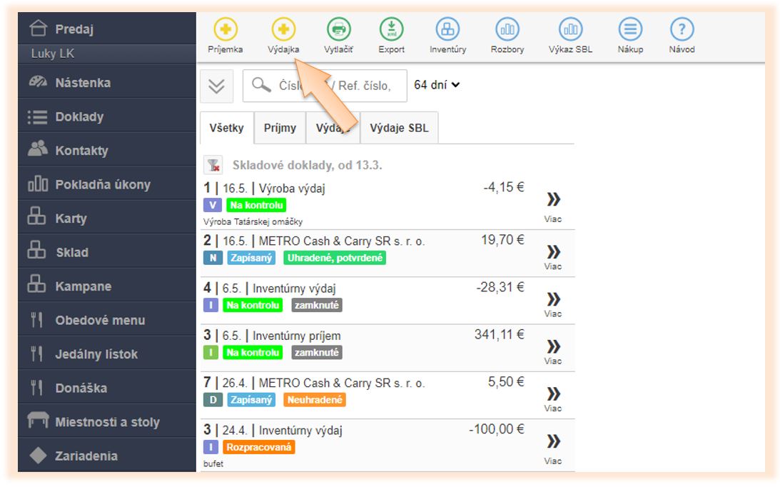 - Do výdajky pridajte kartu "Tatárska omáčka sklad" v množstve 1kg.